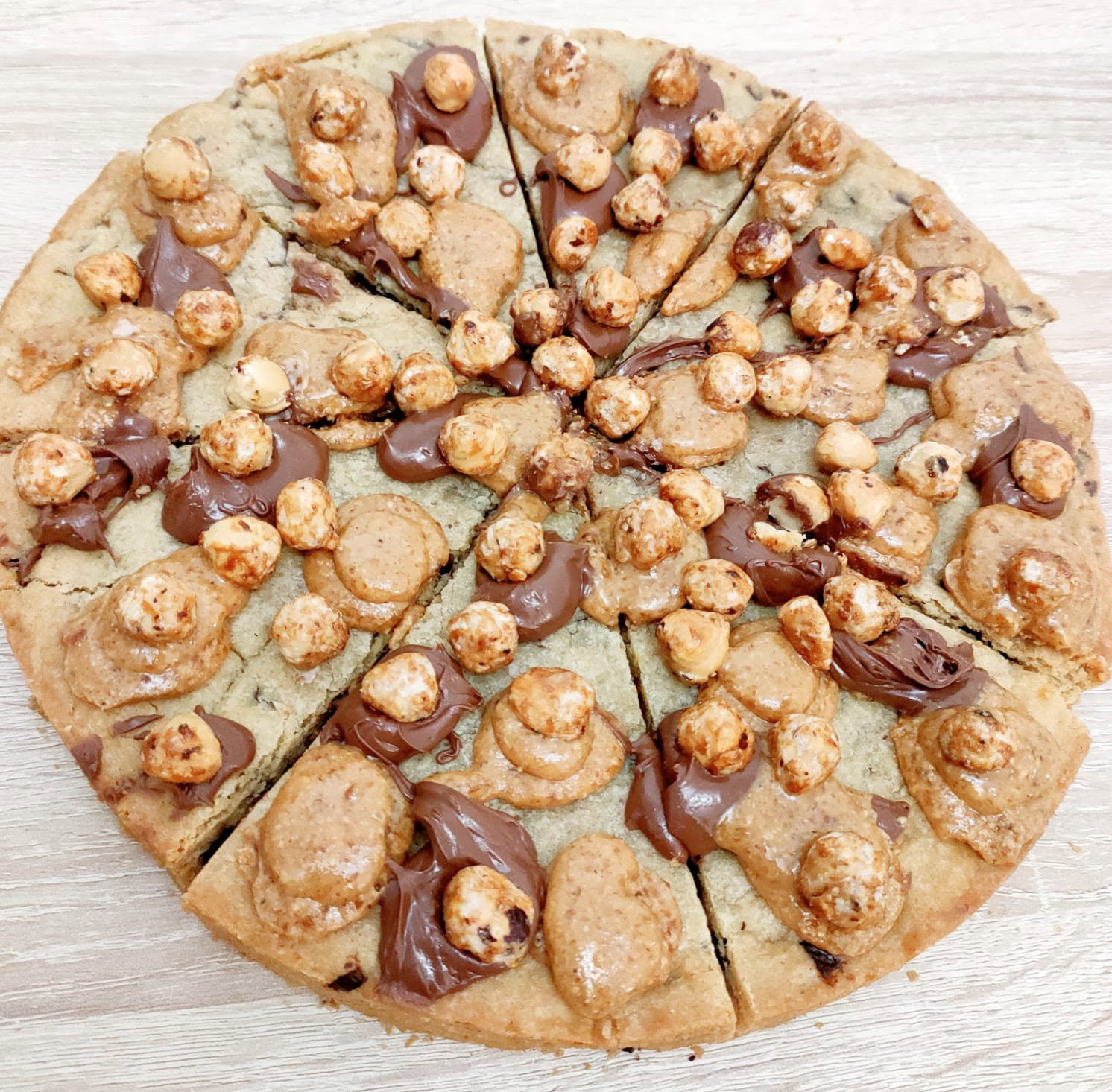 Pâte à cookie aux brisures de chocolat au lait, Praliné Noisette, Gianduja Noisette et Noisettes Caramélisées